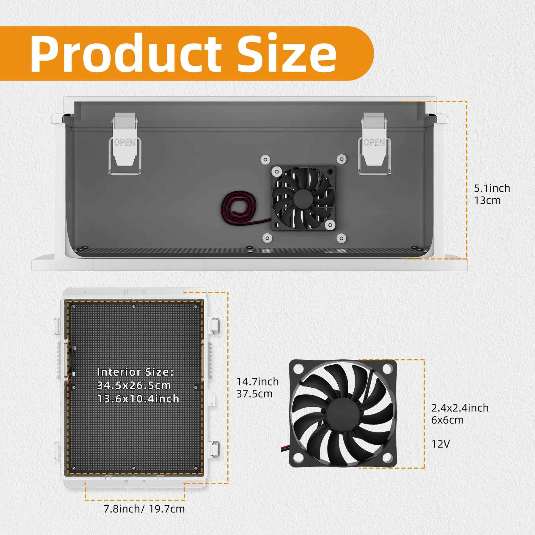 【Überlegene Belüftung für eine optimale Leistung】- Diese elektrische Gehäusekiste verfügt über einen eingebauten 12-V-Lüfter und entlüftete Seitenwände, um die Luftzirkulation und die Wärmeablösung zu fördern, wie in den Bildern mit offenem Gehäuse und Luftströmen gezeigt. Das integrierte Lüftungssystem verhindert eine Überhitzung empfindlicher elektronischer Komponenten im Box.